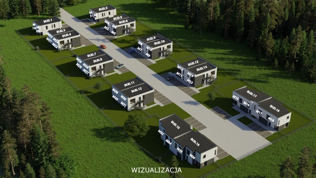- 8 lokali w zabudowie bliźniaczej (zwane dalej szeregowcami – dotyczy budynków nr 15-18)